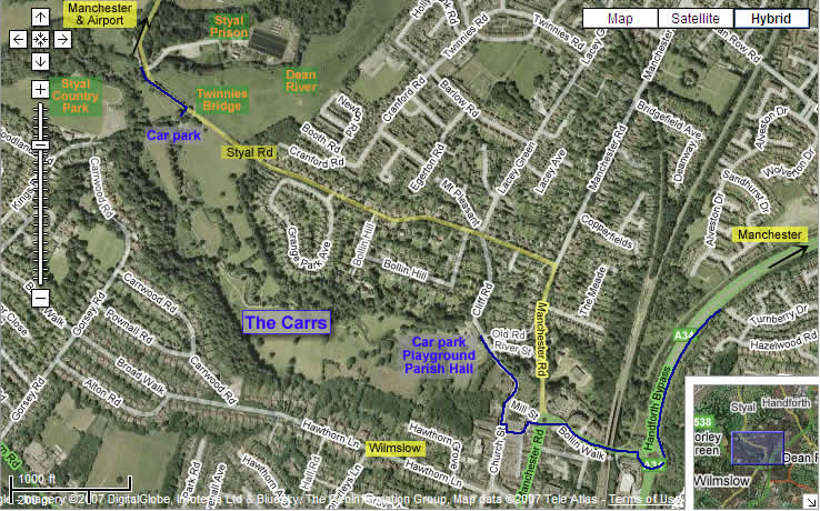 There is another car park on Styal Road between Wilmslow and Styal. It is marked on the map.